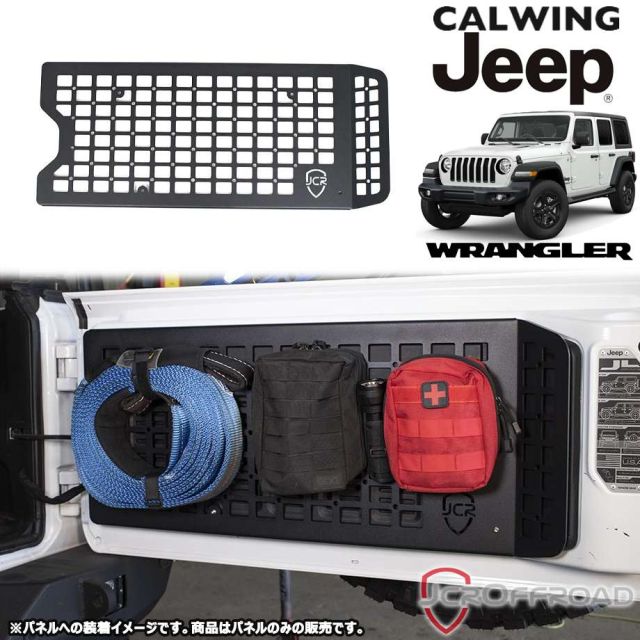 ラングラーJLのテールゲートパネル(インナー)に合わせて設計された、JCR製モールパネルキットをご紹介します。 こちらはテールゲートを利用してラゲッジスペースの収納を最大化する為のパネルシステムとなっております。※取り付けには穴あけ加工が必要です。 限られた車内のストレージを増やすことが可能で、ストラップなどを介して様々な道具をマウントして使用します。 耐久性の高い亜鉛プライマー下地、更に2コートのブラックパウダーコートが塗装されています。 |